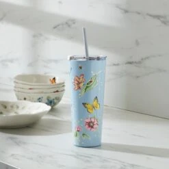 Lenox Butterfly Meadow Light Blue Tumbler With Straw