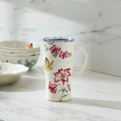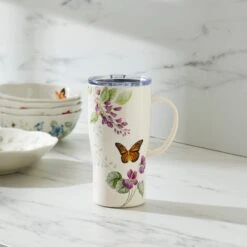 Lenox Butterfly Meadow Pink Stainless Car Coffee Mug