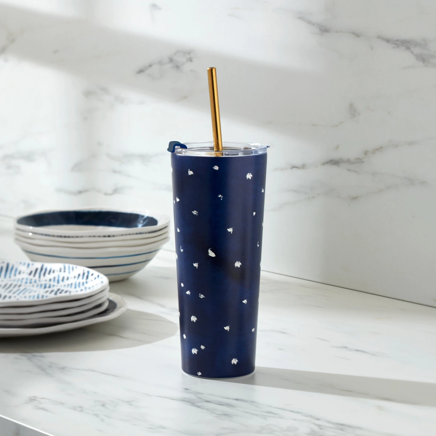 Lenox Blue Bay Dot Stainless Steel Tumbler With Straw
