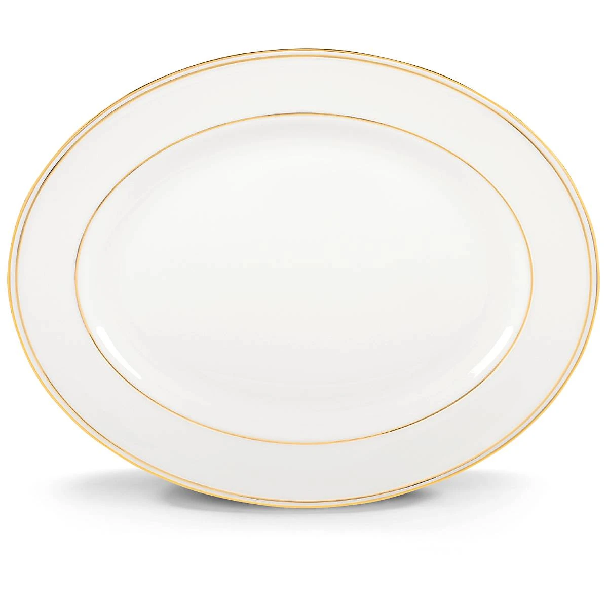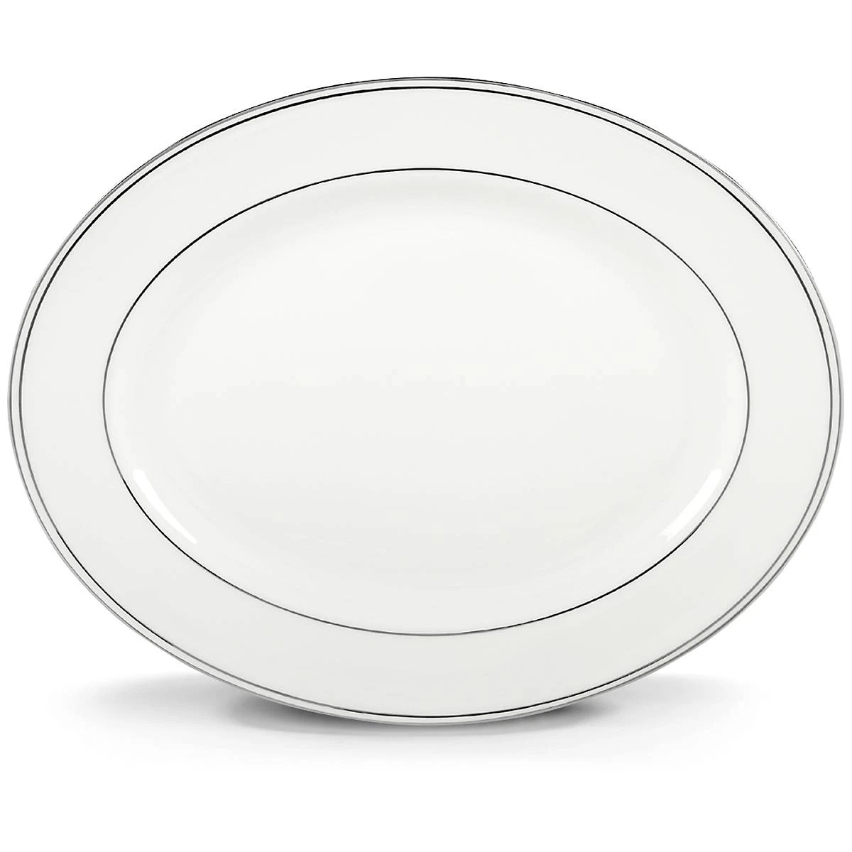 This oval platter, crafted of durable porcelain, features a glittering band of precious platinum accents along the inner and outer rims, for an exceptional addition to a dinner table. This item is dishwasher-safe, for added convenience.