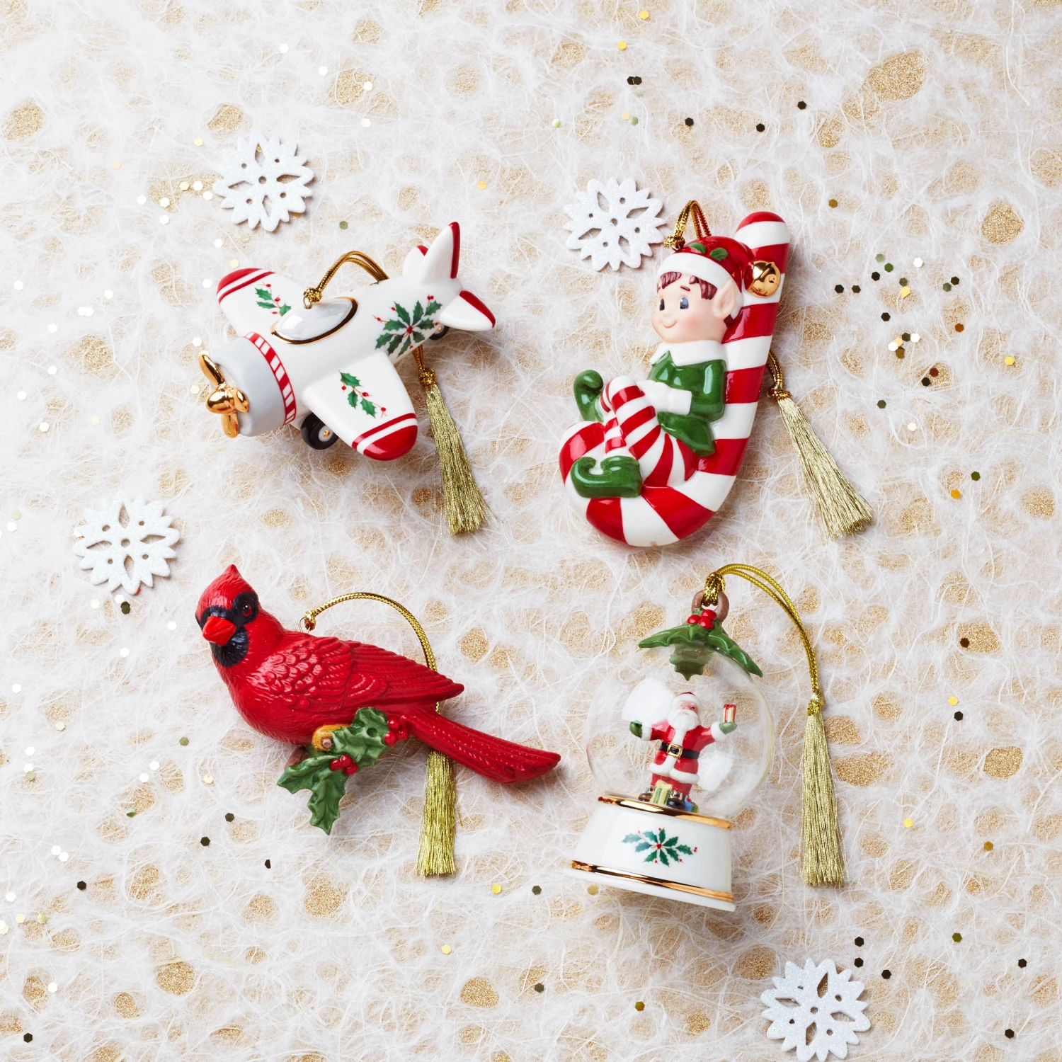 Hearts will soar with this addition to the tree! Featuring an aviation ornament decorated with a holiday design that combines candy cane stripes and beautiful bushels of holly.