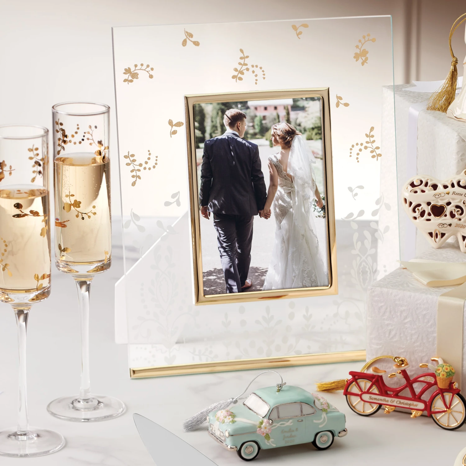 Celebrate your big moment with the Opal Innocence Flourish 2-piece toasting flute set. Perfect for anyone who loves a little romance, this collection is sweet and feminine with a hint of understated retro glamour. Delicate florals across clear glass create a unique look with a vintage vibe that still feels fresh.
